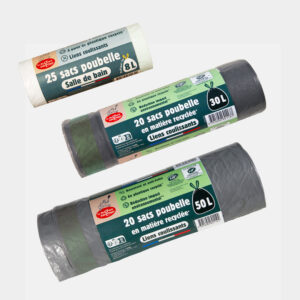 Nos sacs poubelle à lien coulissant sont fabriqués en France uniquement à partir de matières recyclées et de chutes de production pour un impact environmental réduit. Faciles à fermer et à transporter, ils permettent un remplissage optimal et sont totalement étanches (pas de soudure sur le fond du sac).